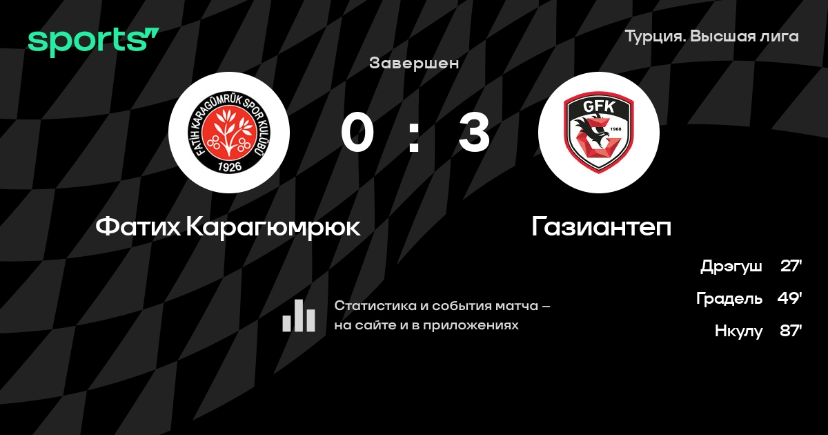 Фатих Карагюмрюк – Газиантеп: Фатих Карагюмрюк не проигрывает в 5 из 6 последних матчей против этого соперника