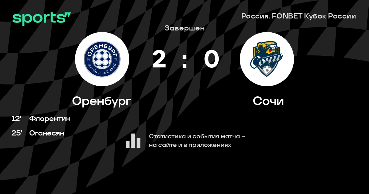 Оренбург – Сочи: Сочи забивает в 5 из 7 последних матчей против этого соперника