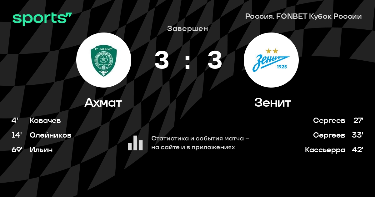Ахмат – Зенит: Зенит забивает в 8 из 10 последних матчей против этого соперника