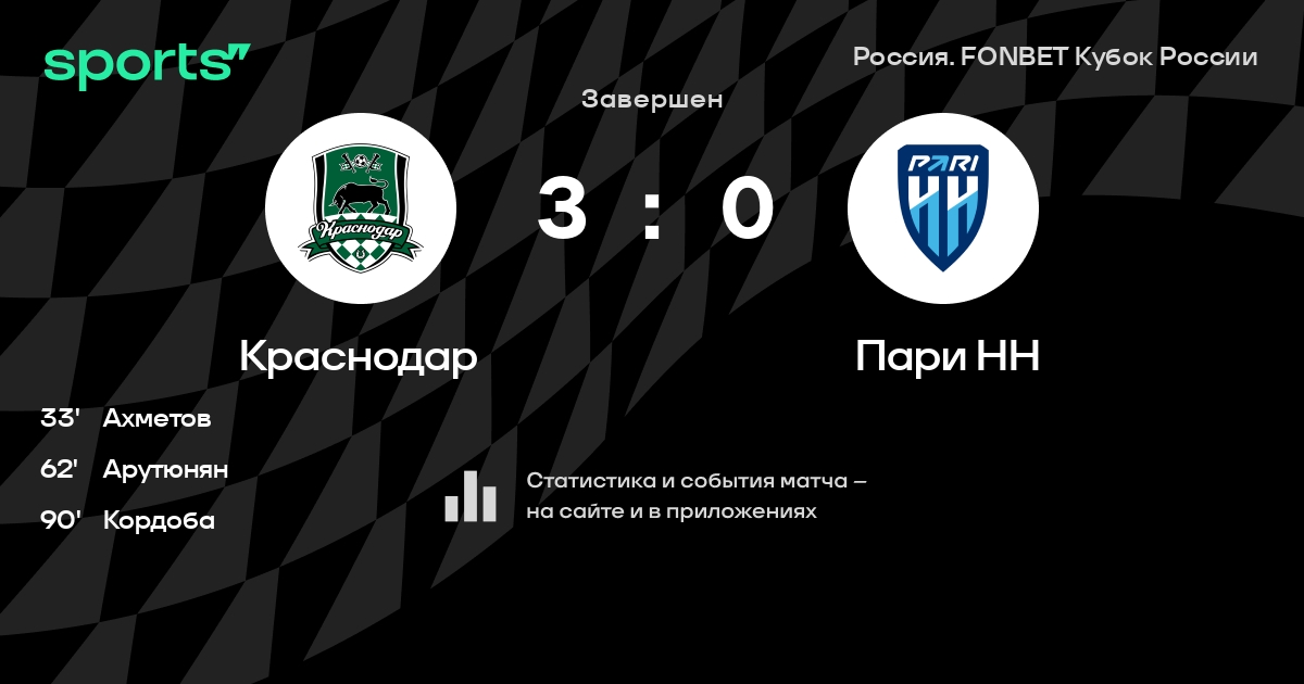 Краснодар – Пари НН: Краснодар побеждает в 4 последних очных матчах