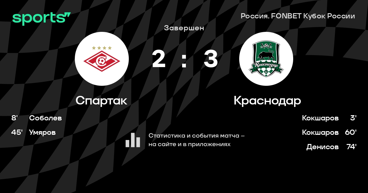 Спартак – Краснодар: Краснодар забивает в 3 последних матчах против этого соперника