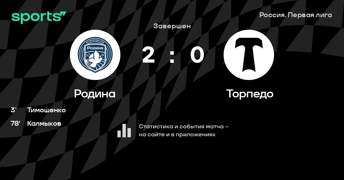 Первая лига. «Родина» победила «Торпедо», «Арсенал» обыграл «Тюмень»