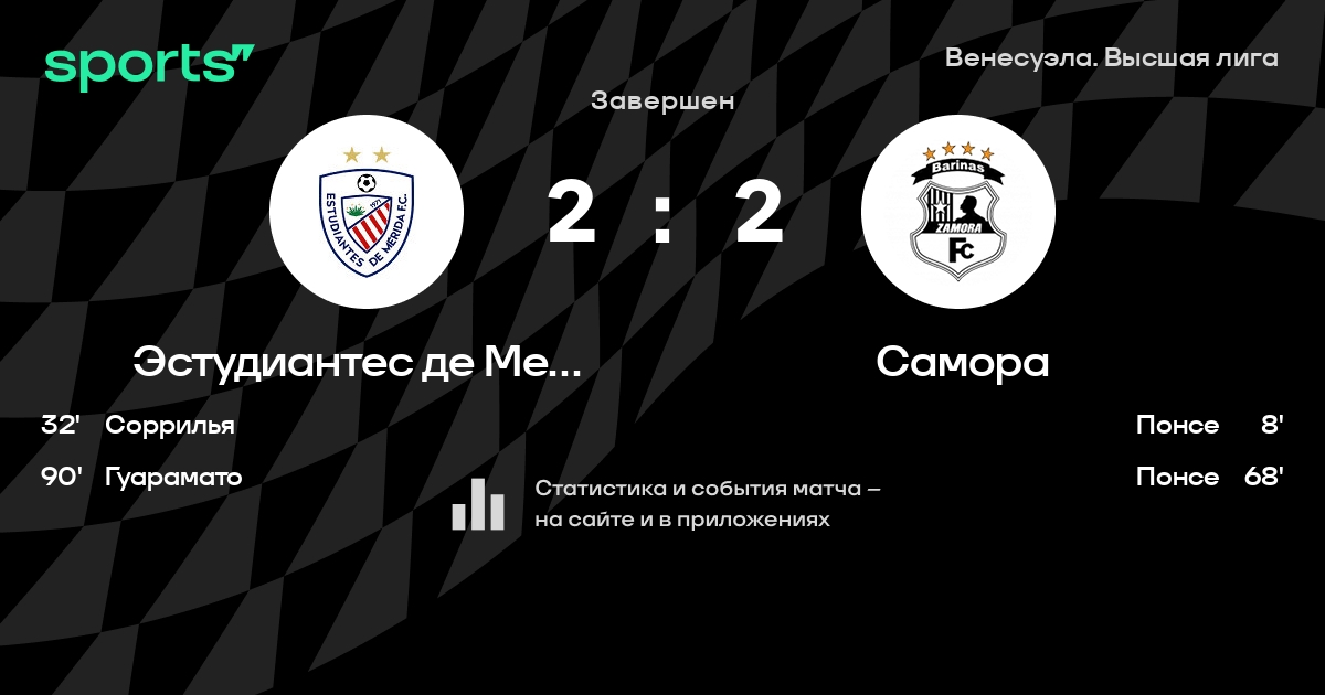 Эстудиантес де Мерида – Самора: Самора забивает в 3 последних матчах против этого соперника