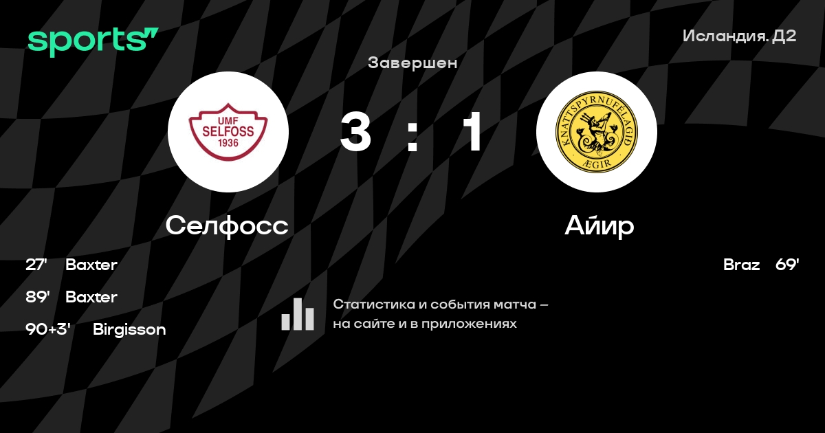 Ágústsson - Василевски, Sánchez Pérez, Ívan Breki Sigurðsson - Hrannar Snær Magnússon, Óskarsson, Pétursson - Tyrfingsson, Мартин, Baxter, JóhannssonЗапасные: Kjartansson, Auðunsson, Antonsson, Einarsson, Vokes, Birgisson, Harðarson