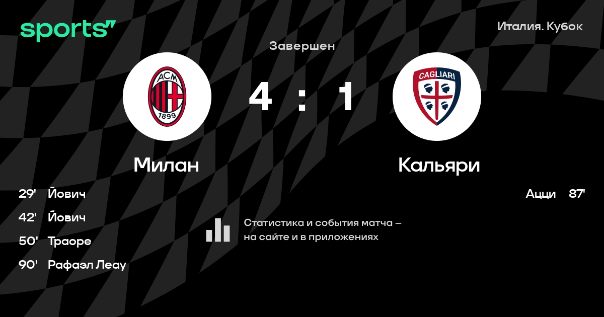 Милан – Кальяри: Милан побеждает в 3 последних очных матчах