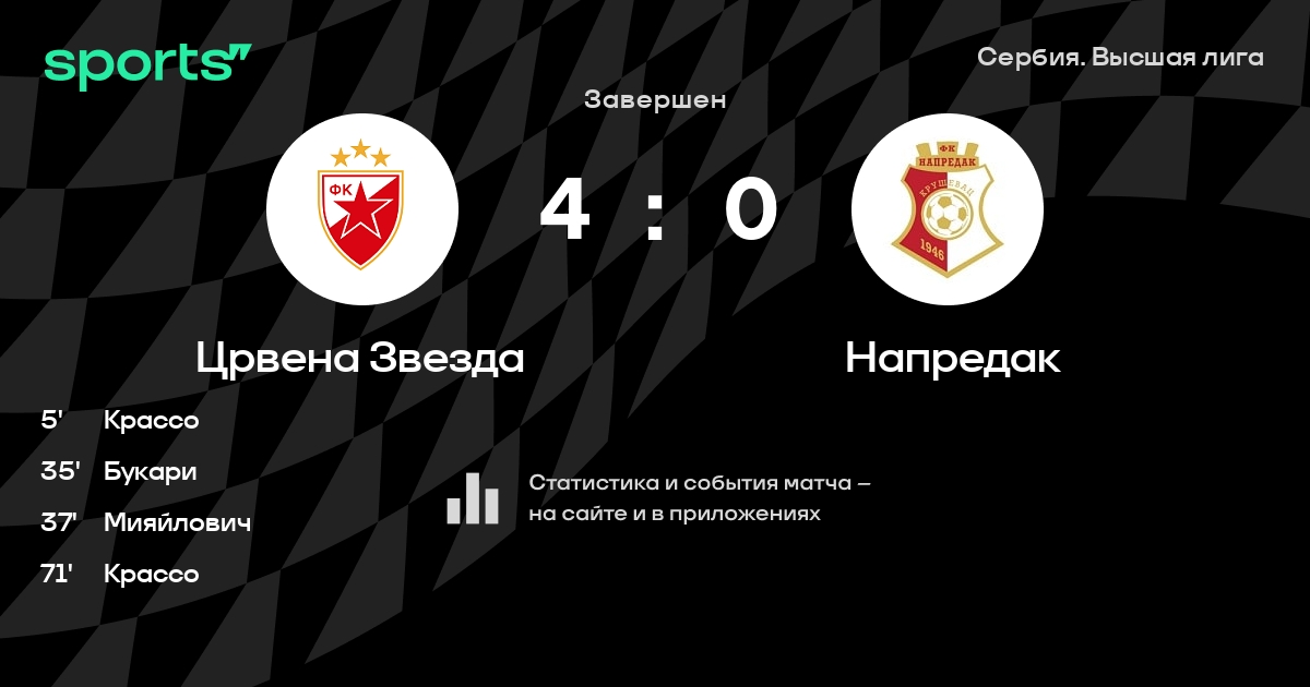 Црвена Звезда – Напредак: Црвена Звезда не пропускает в 1 из 7 последних матчей против этого соперника