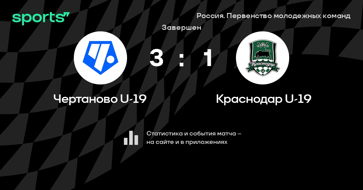 Чертаново U-19 – Краснодар U-19: Чертаново U-19 не проигрывает в 5 из 6 последних матчей против этого соперника