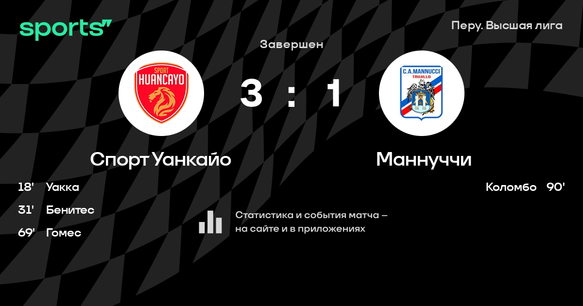 Спорт Уанкайо – Маннуччи: Спорт Уанкайо не пропускает в 3 последних матчах против этого соперника