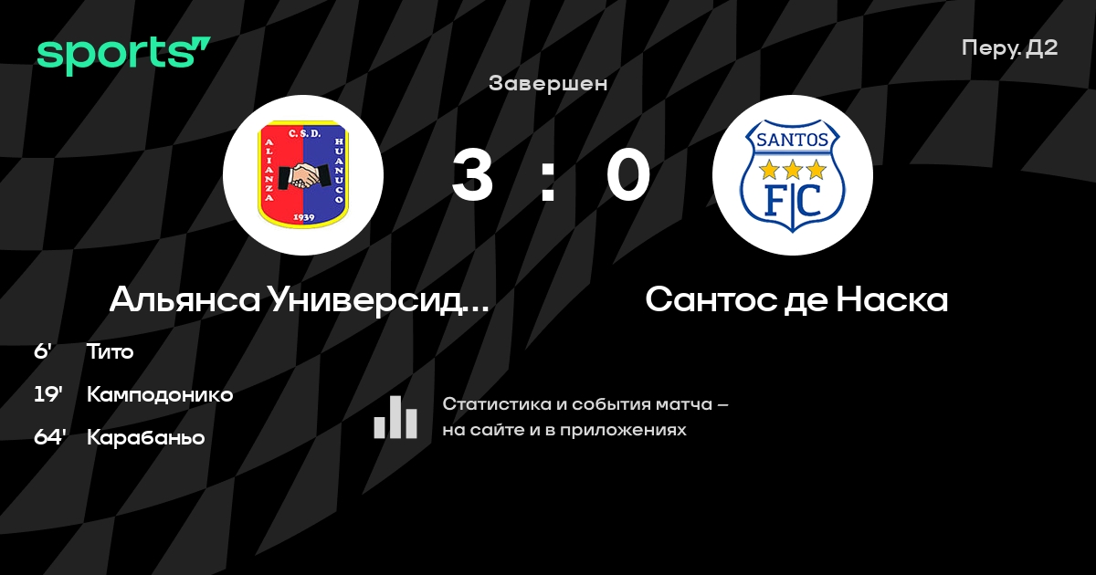 Альянса Универсидад – Сантос де Наска: Сантос де Наска забивает в 4 последних матчах против этого соперника