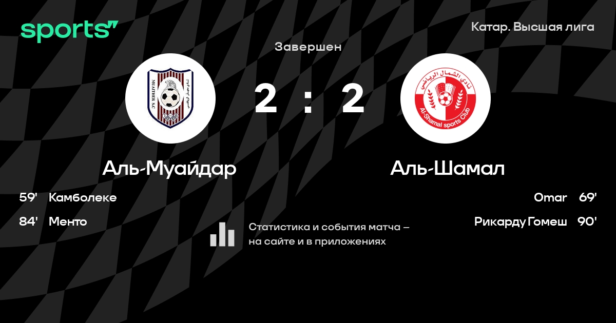 | 1 | Аль-Садд | 22 | 15 | 4 | 3 | 65 | 21 | +44 | 49 | ||