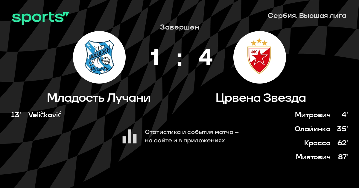Младость Лучани – Црвена Звезда: Црвена Звезда забивает в 8 последних матчах против этого соперника