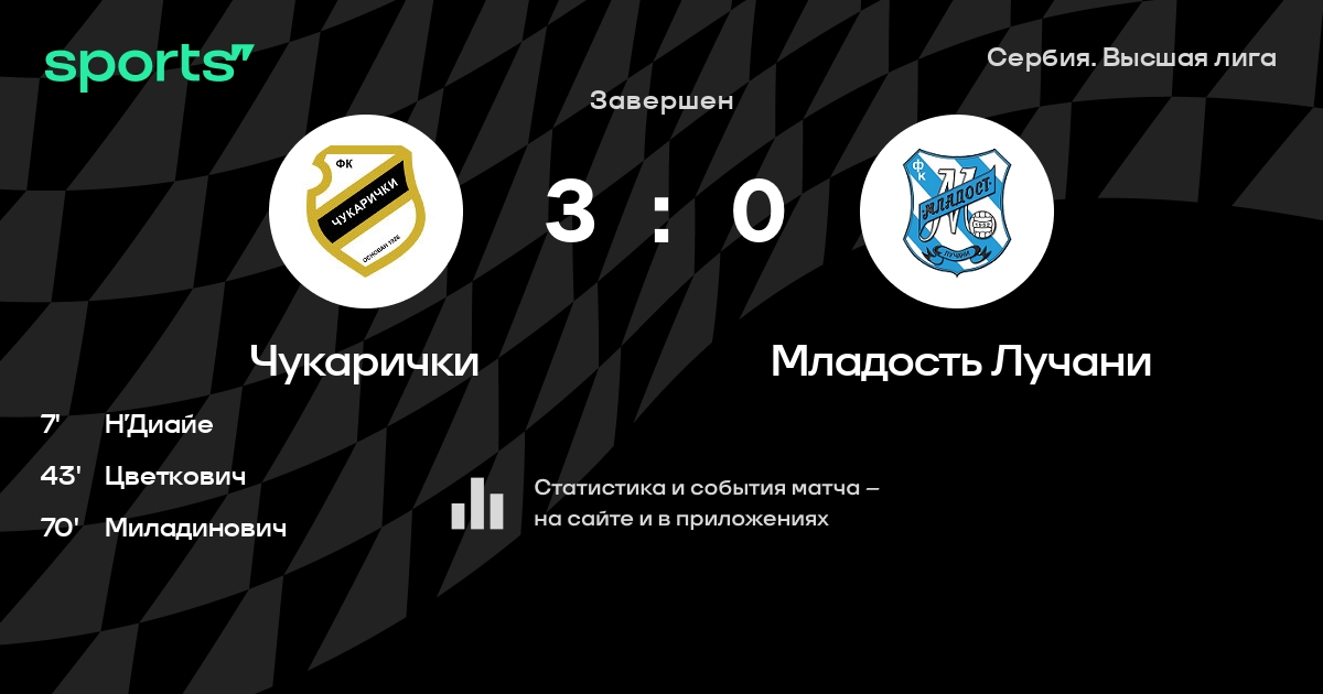 Чукарички – Младость Лучани: Чукарички не проигрывает в 7 последних матчах против этого соперника