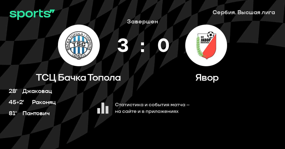 ТСЦ Бачка Топола – Явор: ТСЦ Бачка Топола не пропускает в 3 последних матчах против этого соперника