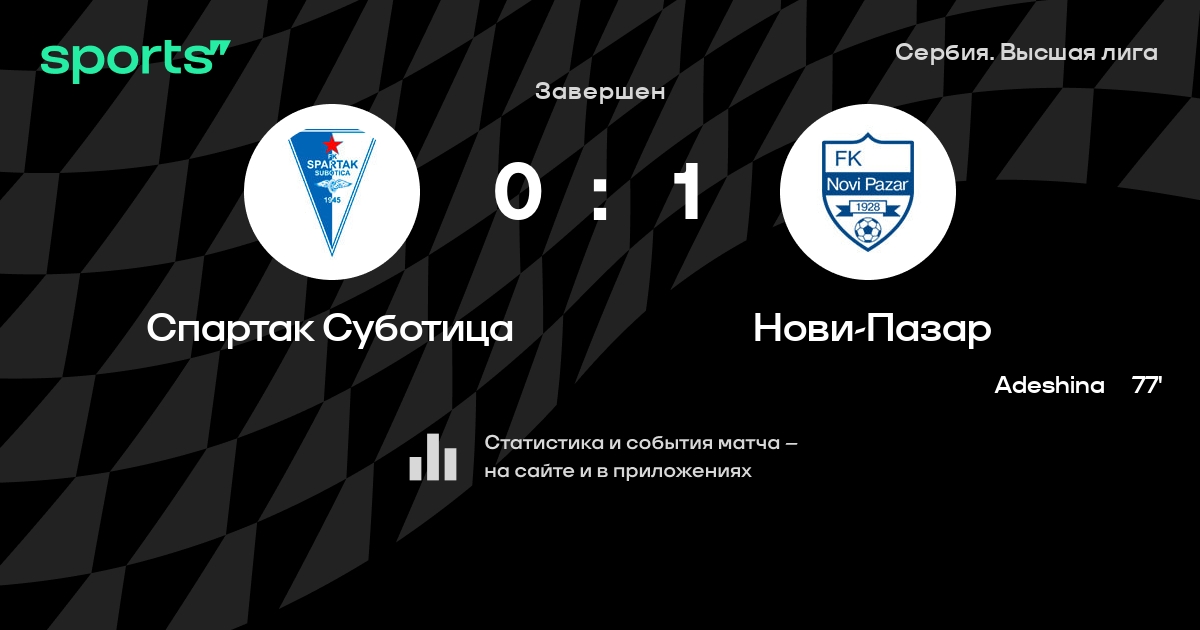 Трансляция Спартак Суботица - Нови-Пазар