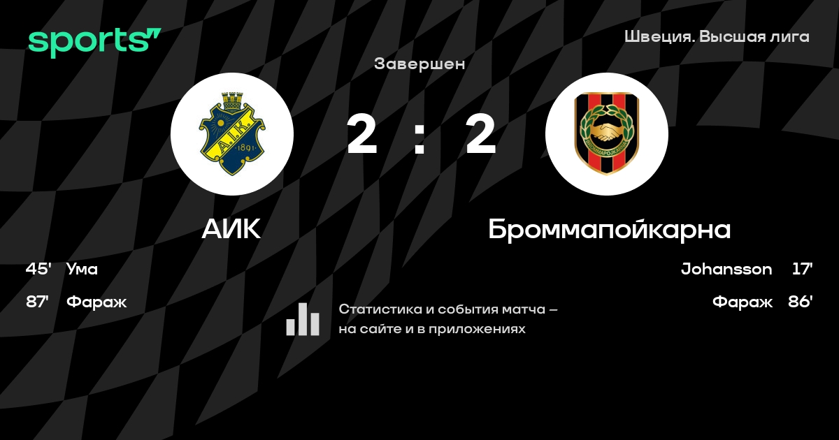 АИК – Броммапойкарна: АИК не проигрывает в 16 из 17 последних матчей против этого соперника