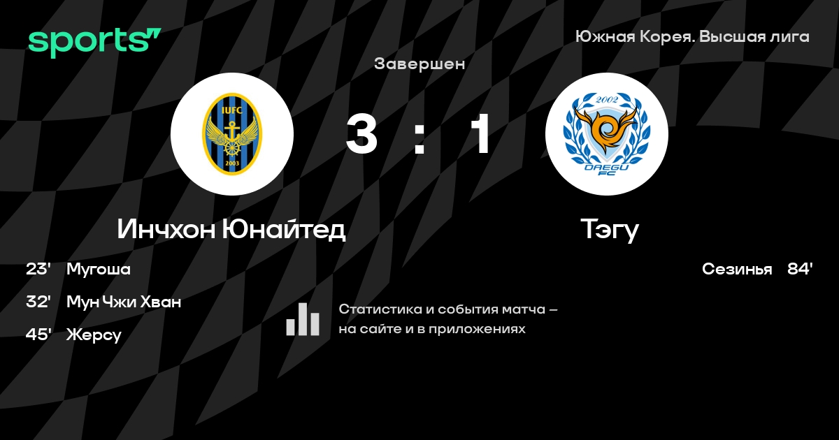 Инчхон Юнайтед – Тэгу: Инчхон Юнайтед не проигрывает в 6 последних матчах против этого соперника