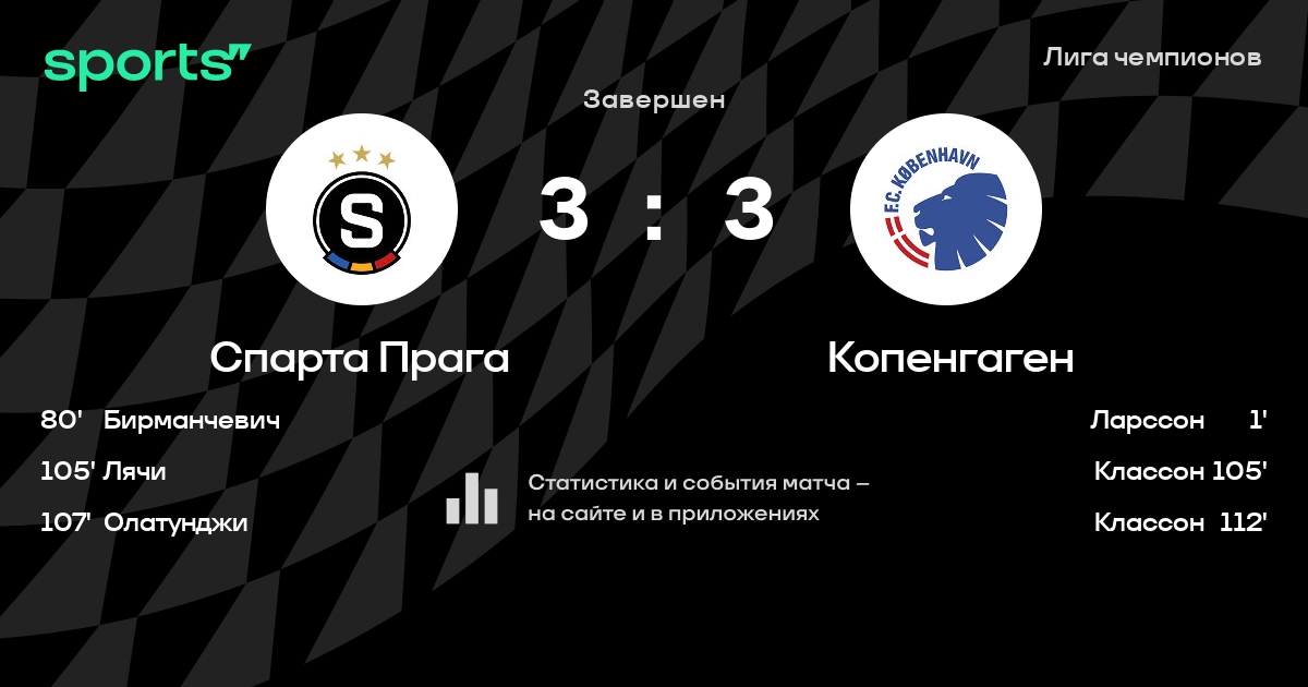 Трансляция Спарта Прага - Копенгаген