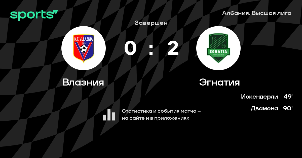 Влазния – Эгнатия: Эгнатия забивает в 3 последних матчах против этого соперника