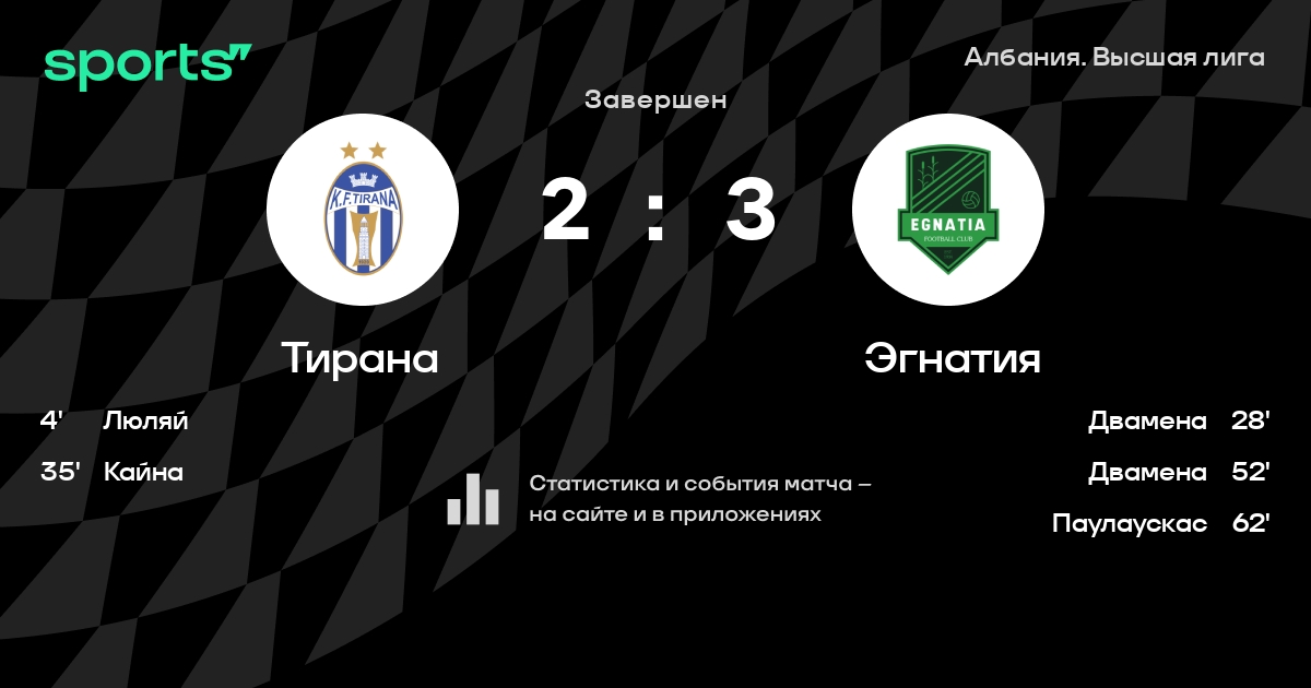 Тирана – Эгнатия: Эгнатия забивает в 3 последних матчах против этого соперника