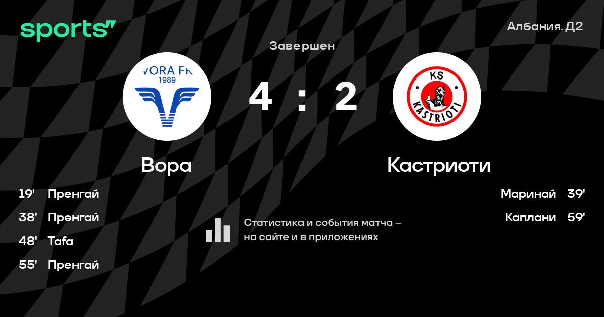 Ята - Имами, Meta - Ntephe, Табаку, Serxhio Tafa, Sefa, Kevin Dalipi - Пренгай, Ariel Peralta Romero, Sajdi ThanaЗапасные: Ручи, Shani, Martins Gaio, Raza, Jakupi, Врапи, Кярдаку, Xhebrahimi, Рабошта, Avdiu