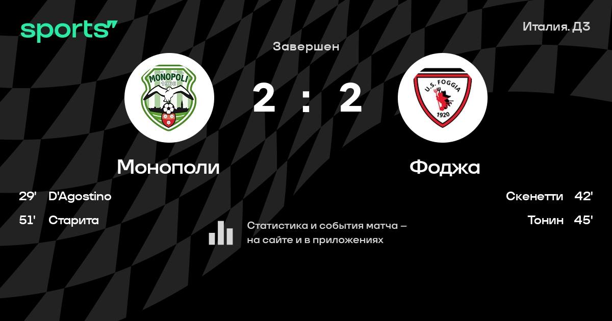 Монополи – Фоджа: Фоджа забивает в 9 последних матчах против этого соперника