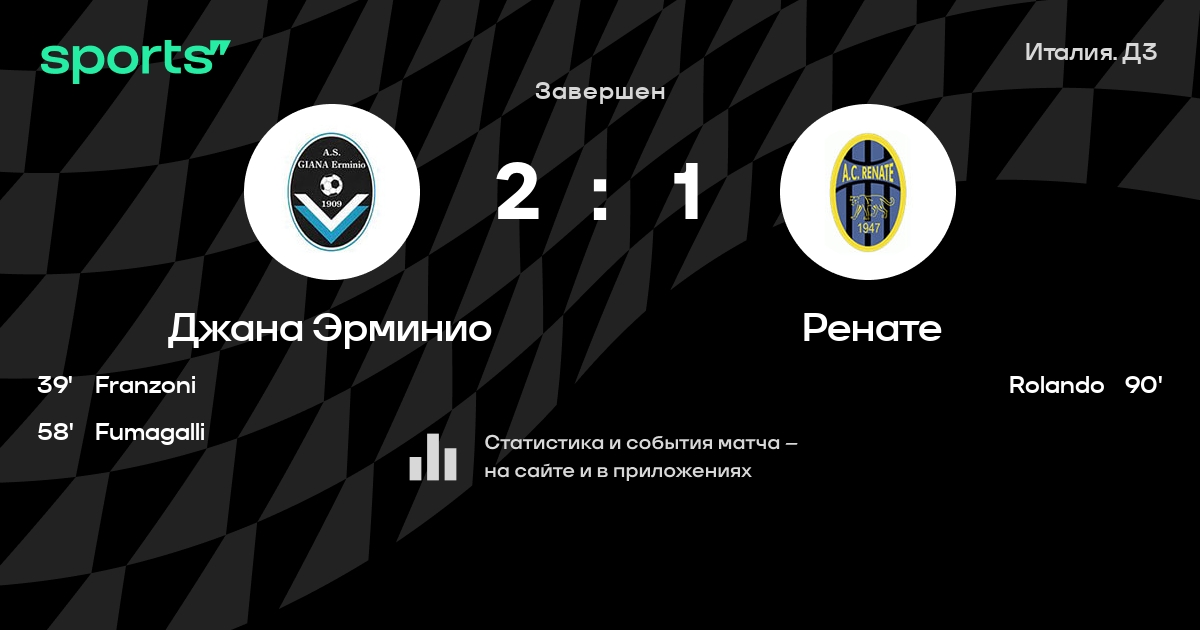 Джана Эрминио – Ренате: Ренате забивает в 7 последних матчах против этого соперника