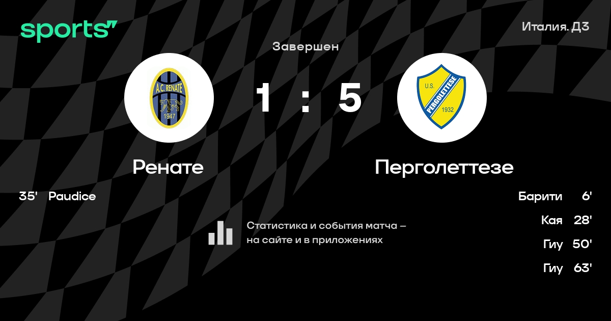 Ренате – Перголеттезе: Перголеттезе не пропускает в 3 последних матчах против этого соперника