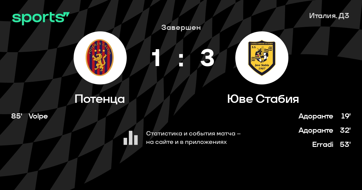 Потенца – Юве Стабия: Юве Стабия не проигрывает в 8 из 10 последних матчей против этого соперника