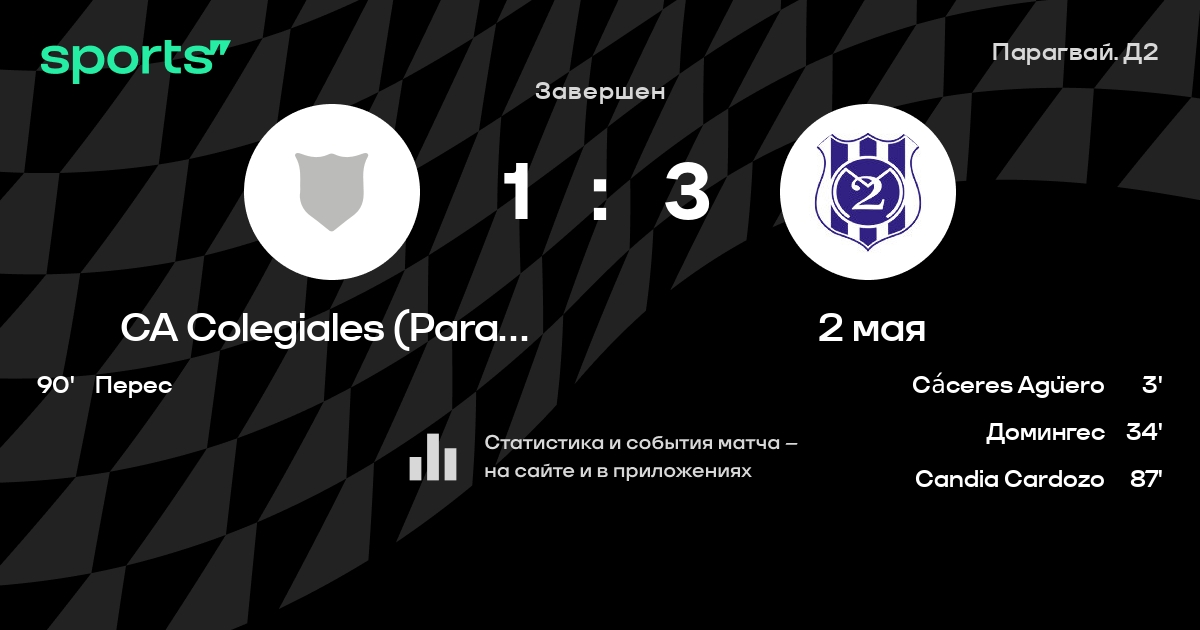 CA Colegiales (Paraguay) – 2 мая: 2 мая не проигрывает в 5 из 7 последних матчей против этого соперника