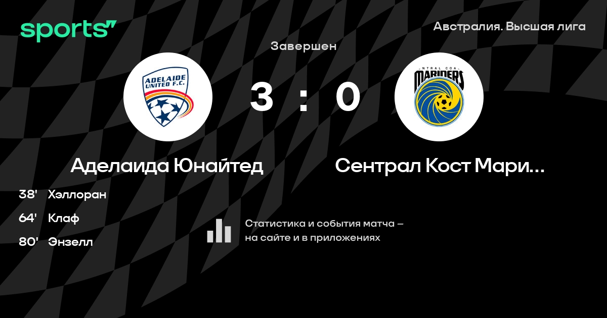 Аделаида Юнайтед – Сентрал Кост Мэринерс: Сентрал Кост Мэринерс забивает в 9 последних матчах против этого соперника