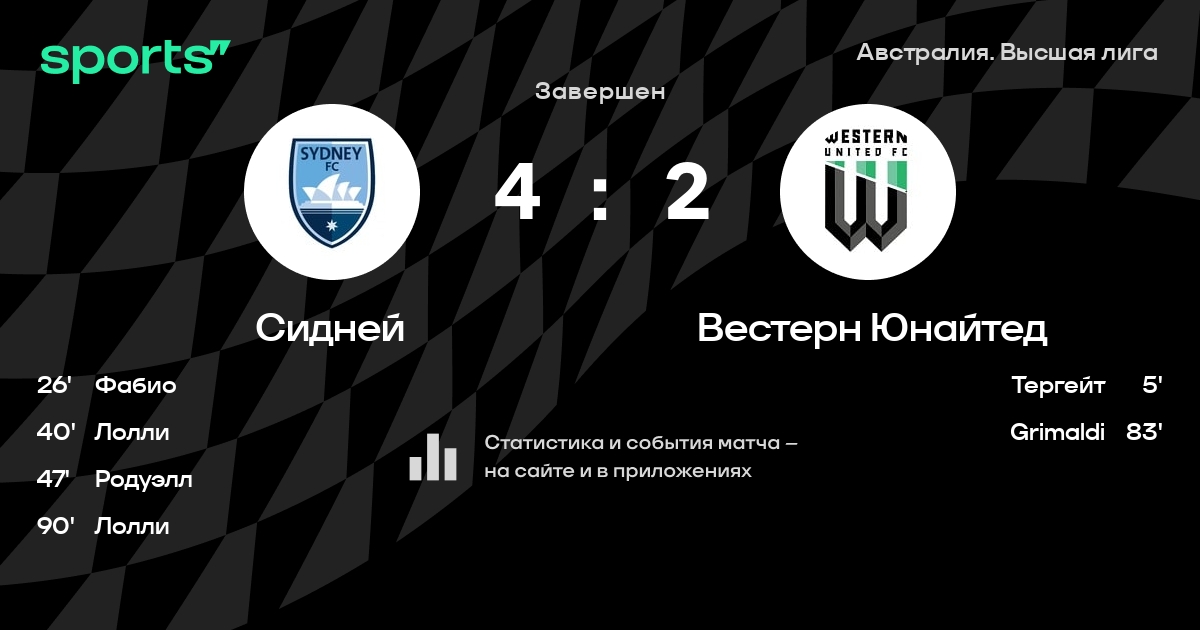 Сидней – Вестерн Юнайтед: Вестерн Юнайтед забивает в 3 последних матчах против этого соперника