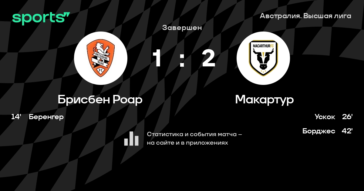 Брисбен Роар – Макартур: Макартур не проигрывает в 5 последних матчах против этого соперника