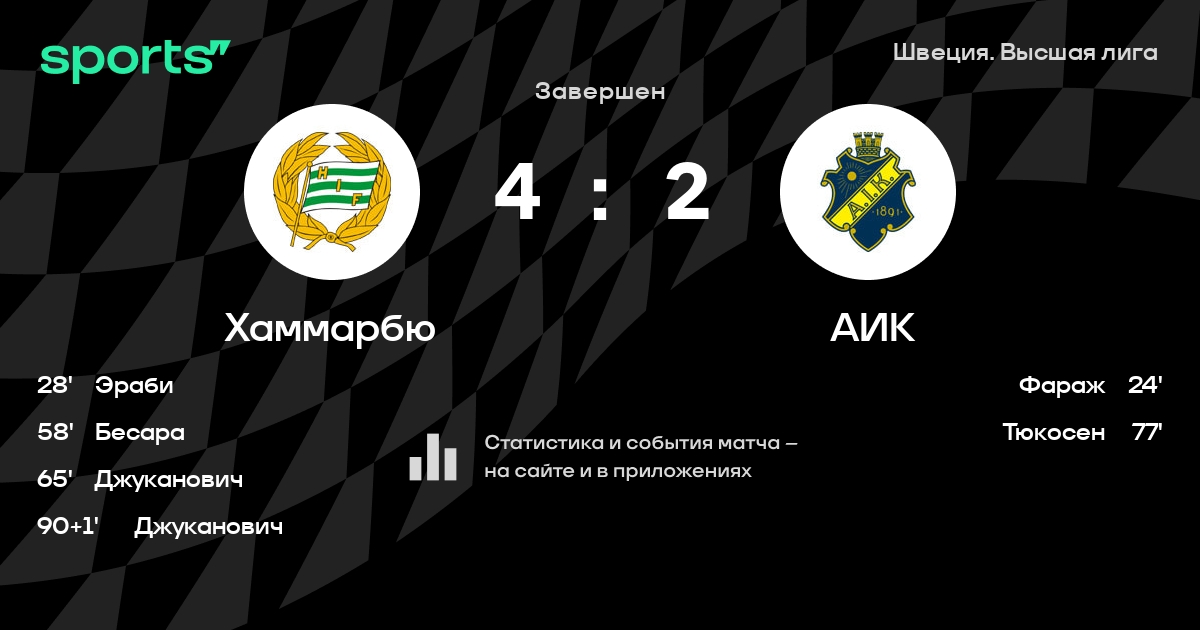 Хаммарбю – АИК: АИК забивает в 4 последних матчах против этого соперника