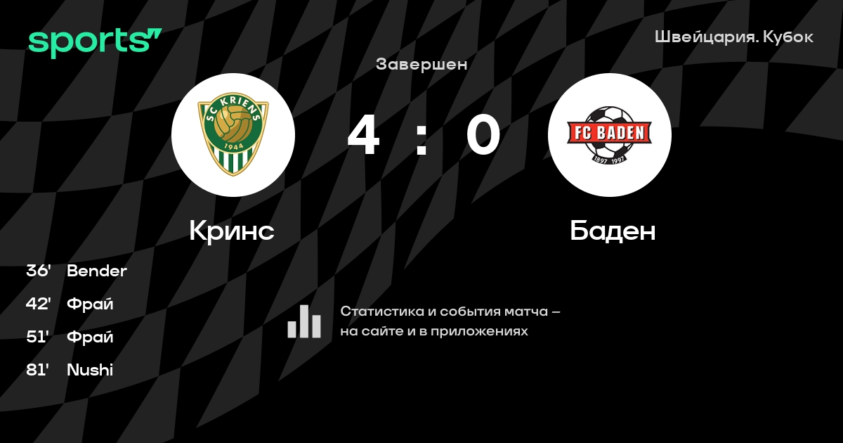 Кринс – Баден: Кринс забивает в 12 из 14 последних матчей против этого соперника