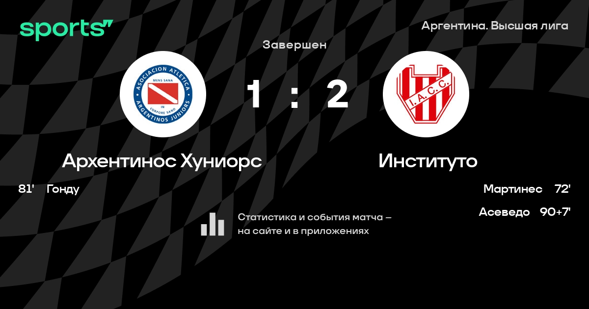 Архентинос Хуниорс – Институто: Институто не проигрывает в 5 из 7 последних матчей против этого соперника