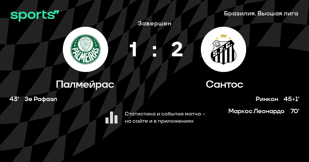 Сантос не выигрывает в 6 последних матчах в гостях в турнире «Серия A»