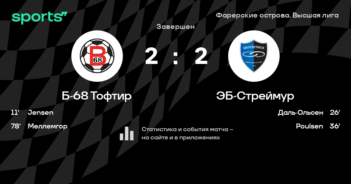Б-68 Тофтир – ЭБ-Стреймур: ЭБ-Стреймур не проигрывает в 8 из 10 последних матчей против этого соперника в гостях