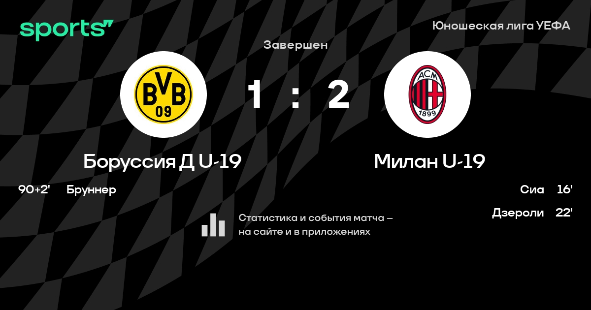 Боруссия Д U-19 - Милан U-19: положение в турнире