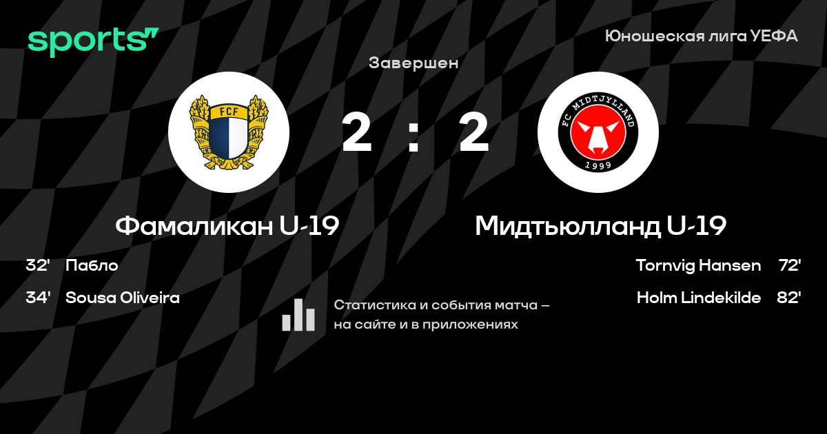 Трансляция Фамаликан U-19 - Мидтьюлланд U-19