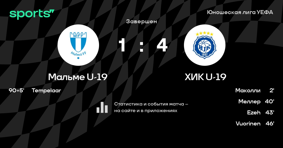 В последних 5 играх Мальме U-19 забивает в среднем 1.20 гола за игру