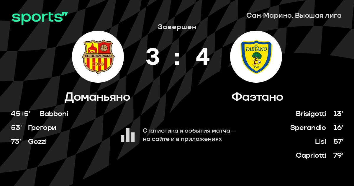 Доманьяно – Фаэтано: Фаэтано не проигрывает в 5 из 7 последних матчей против этого соперника