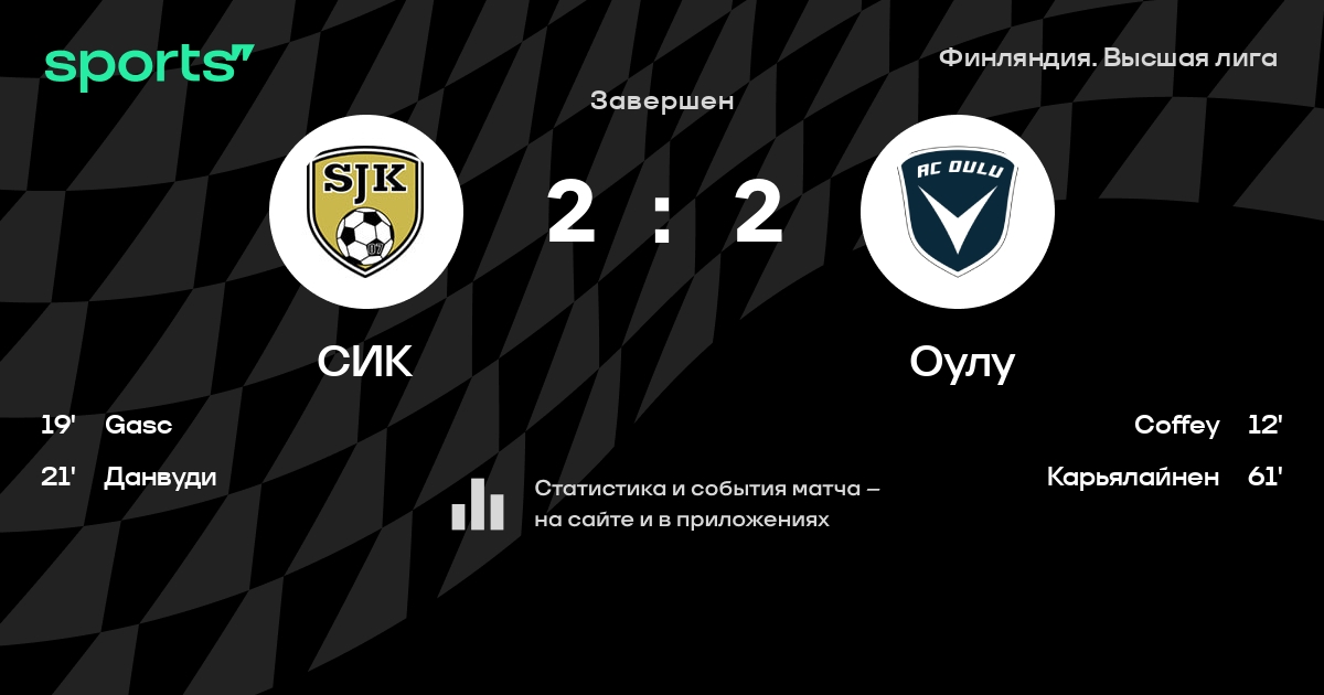 СИК – Оулу: Оулу побеждает в 4 последних очных матчах в гостях