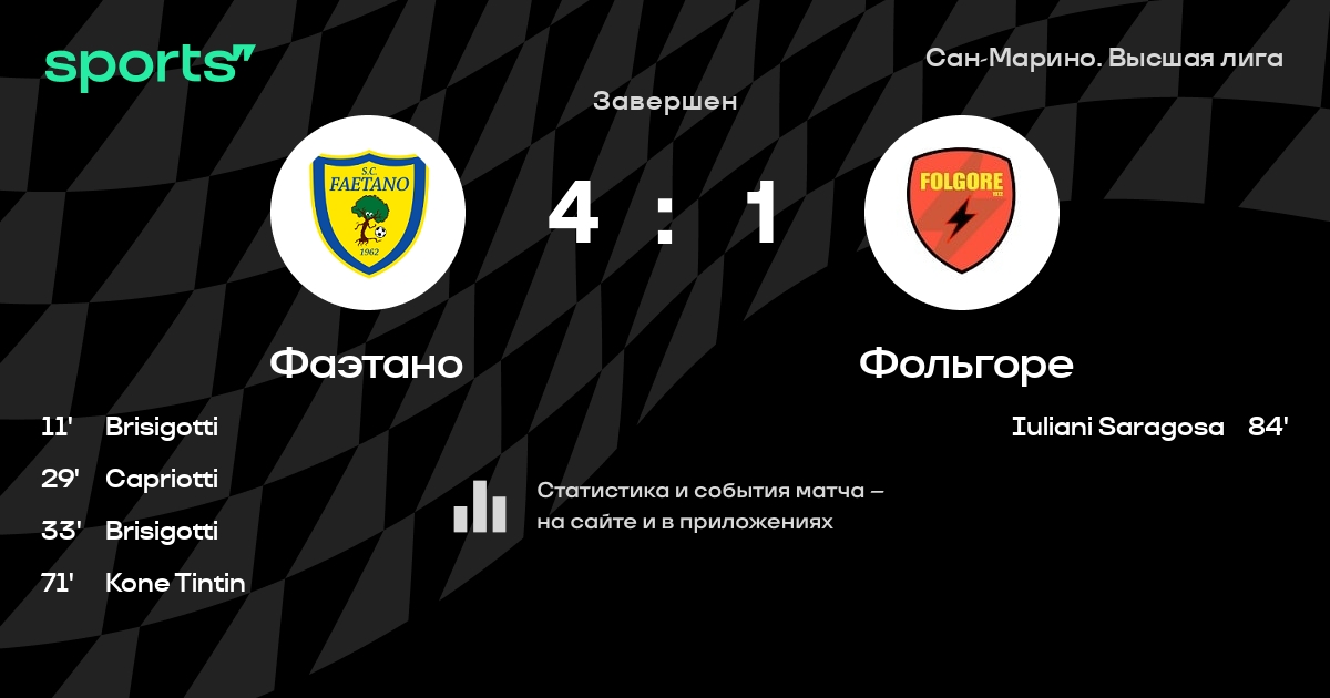 Фаэтано – Фольгоре: Фольгоре не пропускает в 5 последних матчах против этого соперника