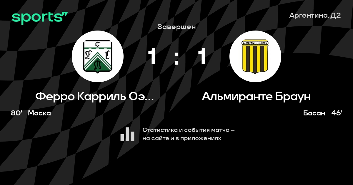 Ферро Карриль Оэсте – Альмиранте Браун: Альмиранте Браун не проигрывает в 5 из 7 последних матчей против этого соперника