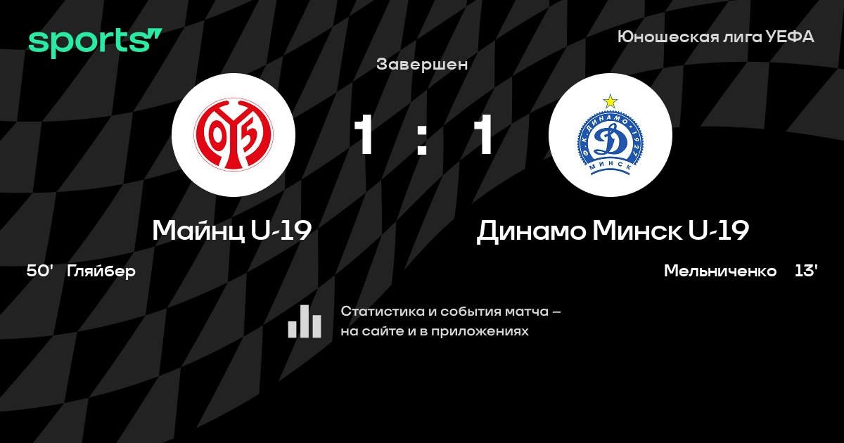 Результат прошлой игры в турнире «Юношеская лига УЕФА»: FSV Mainz 05 Under 19 – Марибор U-19 1:1.