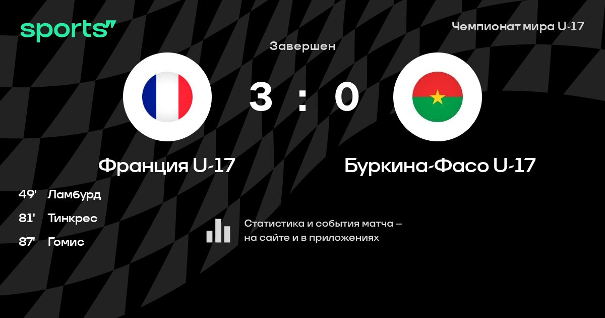 Трансляция Франция U-17 - Буркина-Фасо U-17