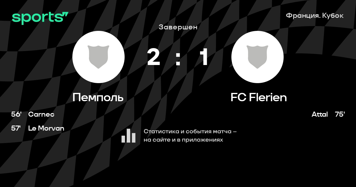 Walide Tanine - Kelig Terrien, Le Guen - Lucas Rivoallan, Gomis, Le Discord, Samuel Cosquer, Pierre Le Goffic, Carnec - Adrien Le Morvan, Elouan OllivierЗапасные: Lembourg, Fofana, Fofana, Le Malefan, Huet, Le Louët
