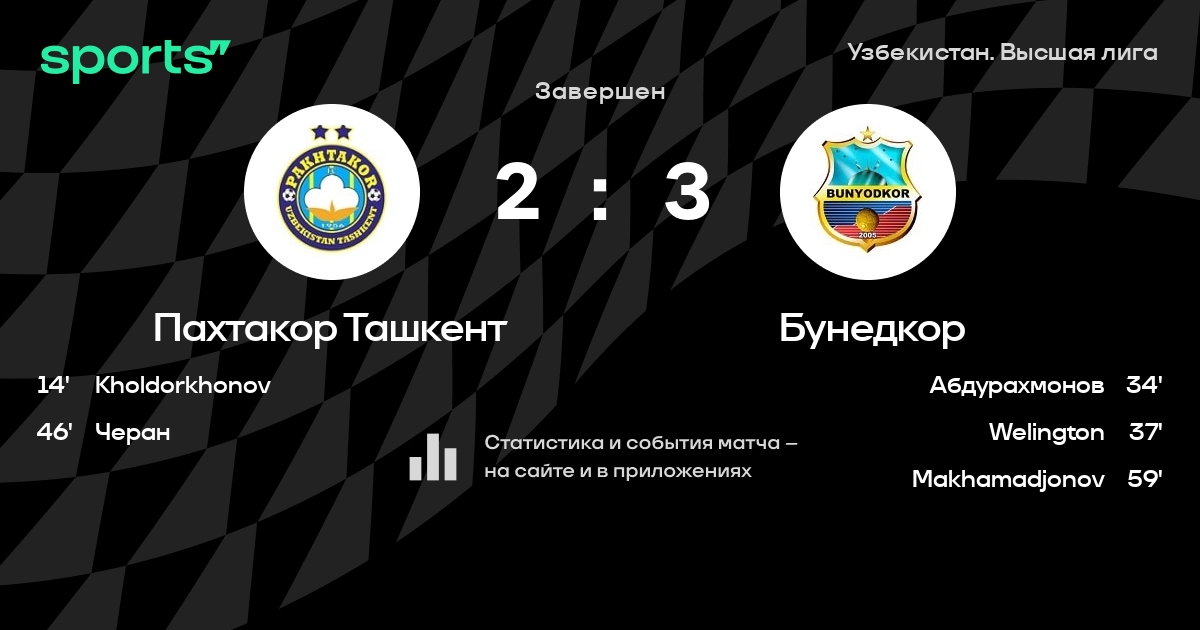 Пахтакор Ташкент – Бунедкор: Пахтакор Ташкент забивает в 13 последних матчах против этого соперника