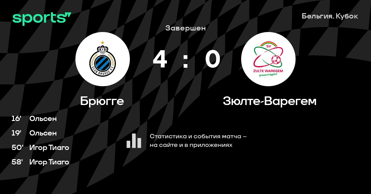 Зюлте-Варегем побеждает в 3 последних матчах в гостях в турнире «Кубок Бельгии»