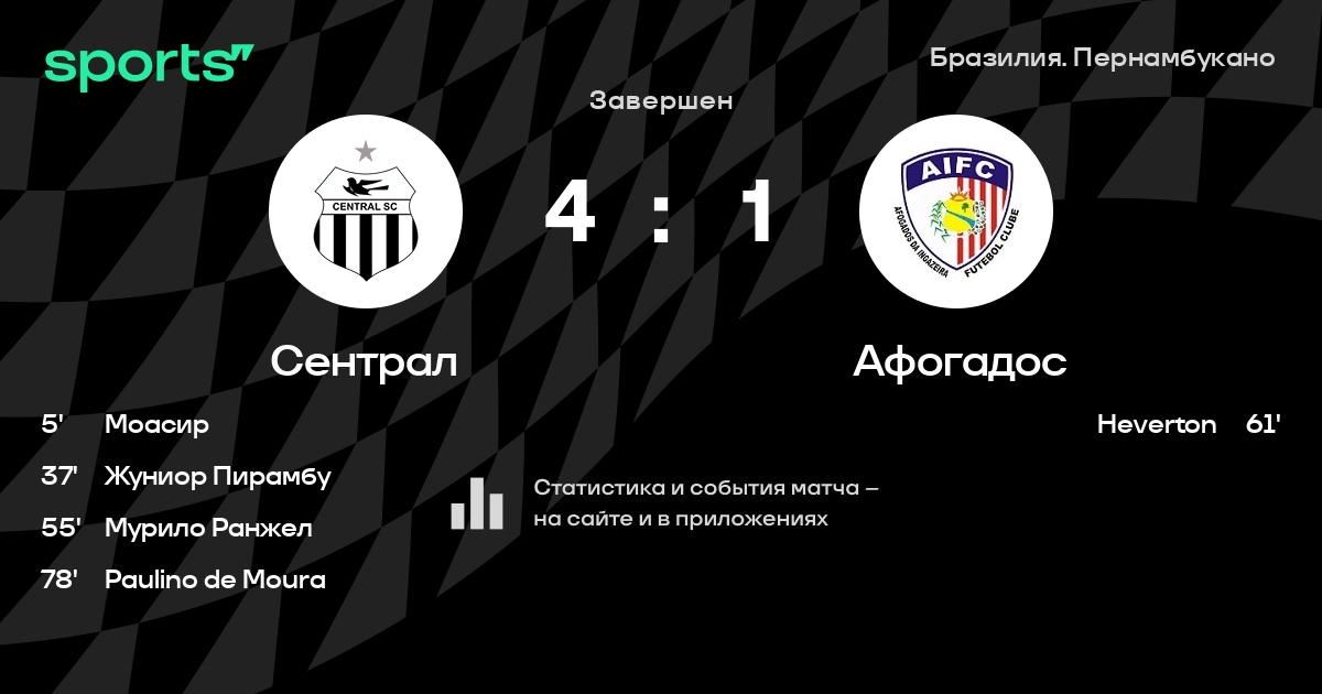 Сентрал – Афогадос: Сентрал забивает в 5 последних матчах против этого соперника